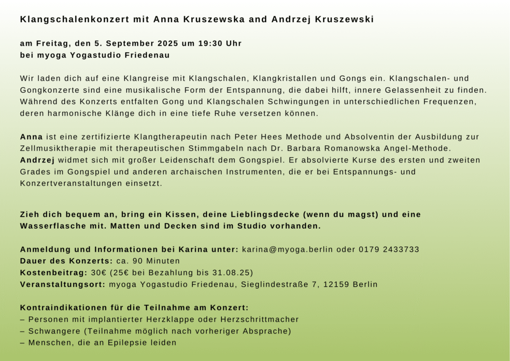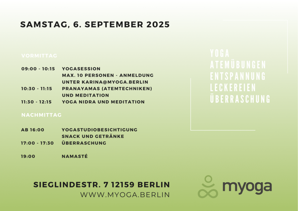 Anmeldung und Info unter karina@myoga.berlin oder 0179 2433733